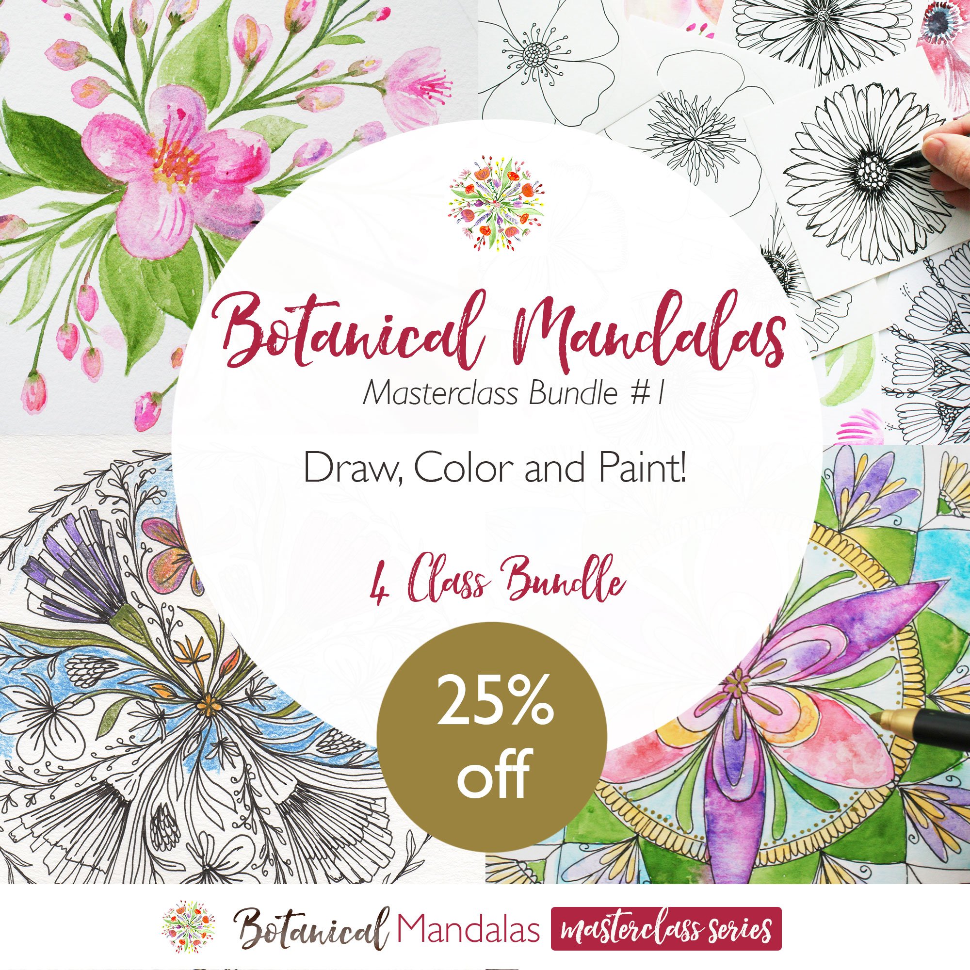 Kick start your own unique Botanical Mandalas Journey with these classes inside the bundle: